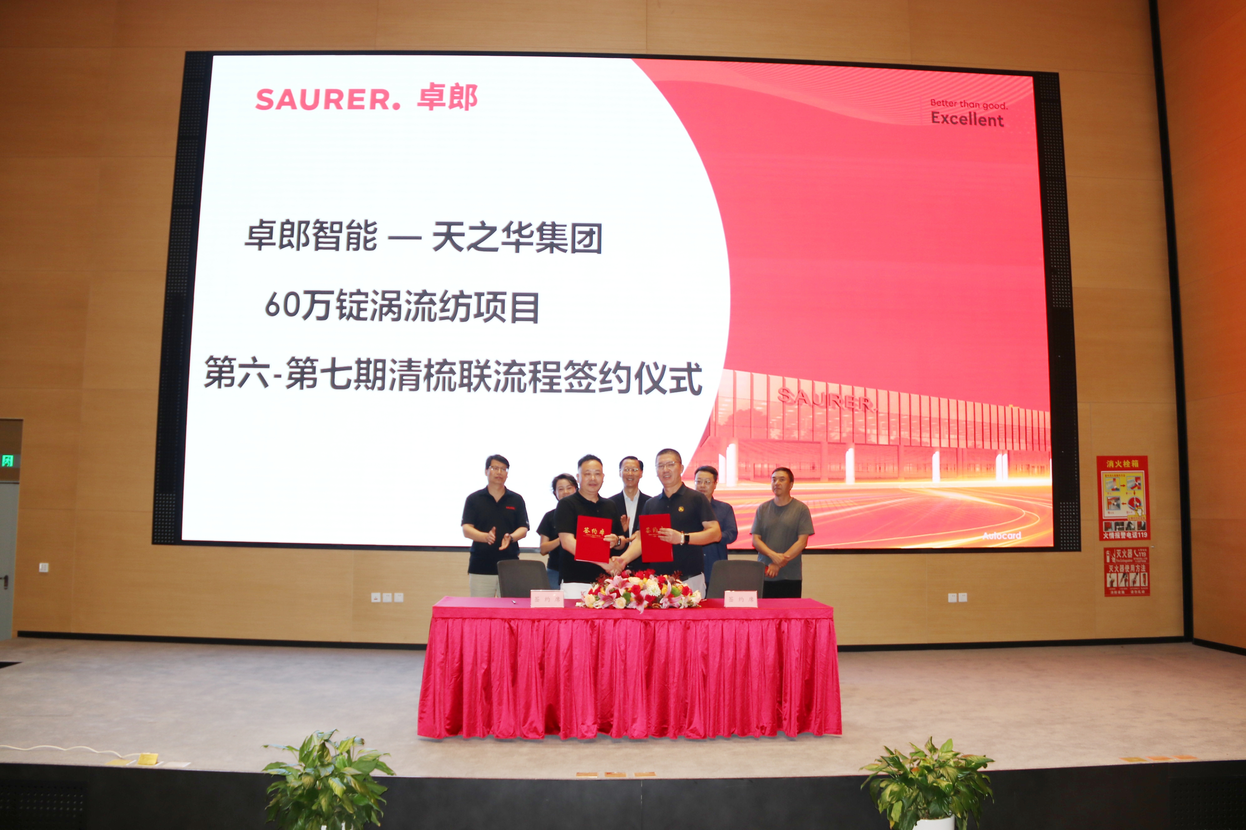 渦流紡龍頭再牽手|卓郎智能與天之華集團(tuán)續(xù)簽60萬(wàn)錠渦流紡項(xiàng)目第六第七期前紡訂單
