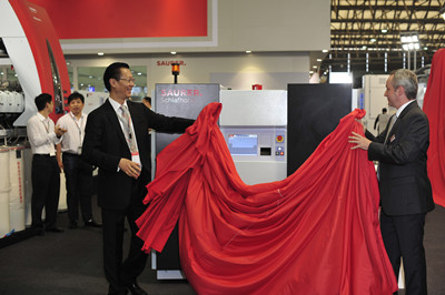 (金昇集團董事長兼卓郎集團董事長潘雪平先生與卓郎集團CEO Daniel Lippuner先生共同為卓郎新產品揭幕)
