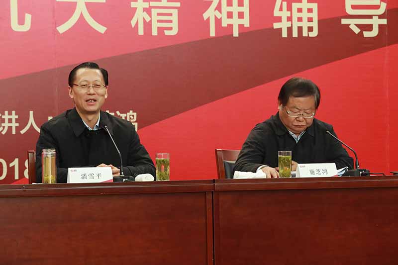 在四個小時的宣講報告中,施芝鴻從深刻領會習近平總書記在黨的十九大報告中強調提出的“不忘初心,牢記使命”所蘊含的深邃厚重的歷史內容和現實意義;深刻領會中國特色社會主義進入新時代、我國發展進入新起點、中國特色社會主義進入新的發展階段問題;深刻領會在全面建成小康社會的基礎上,分兩步走在本世紀中葉建成富強民主文明和諧美麗的社會主義現代化強國的戰略安排;深刻領會十九大對經濟建設、政治建設、文化建設、社會建設、生態文明建設等作出的一系列重大決策部署;深刻領會中國特色社會主義進入新時代黨建工作的總要求、總布局等四個層面,對黨的十九大報告進行了系統闡釋和深入解讀,會場多次響起熱烈掌聲。